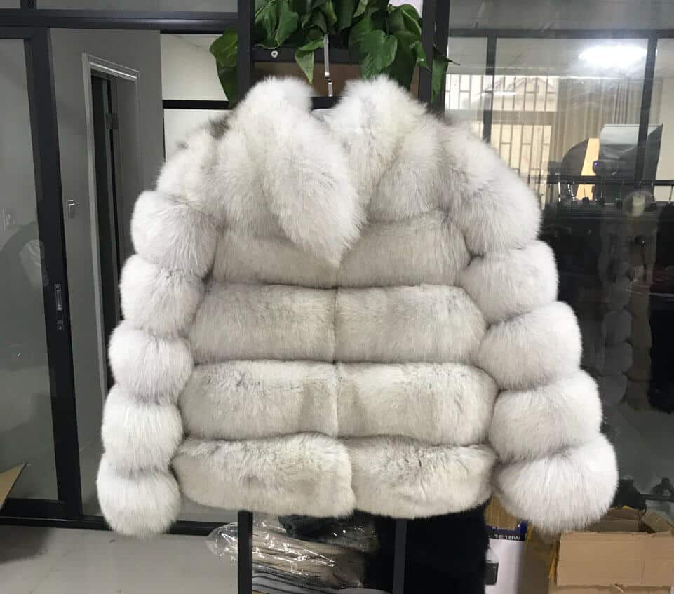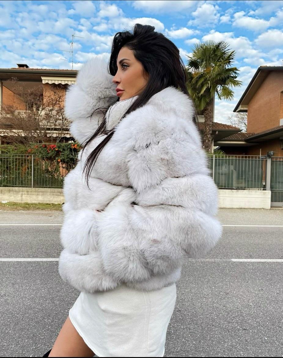Пальто из лисьего меха с воротником-стойкой Карла(натуральный белый)