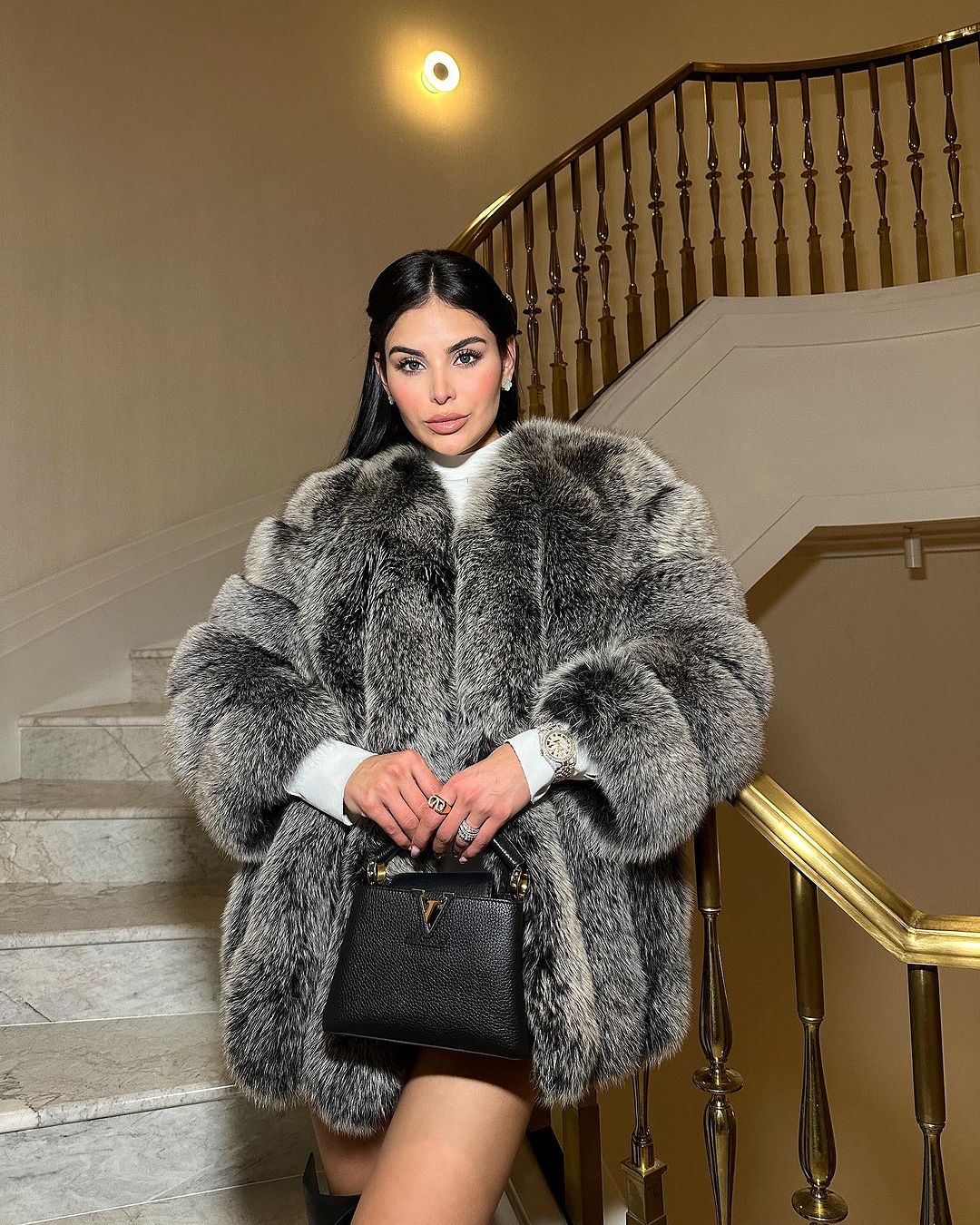 Шуба из лисьего меха с вертикальными вставками Reagan(светло-черная)